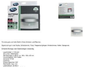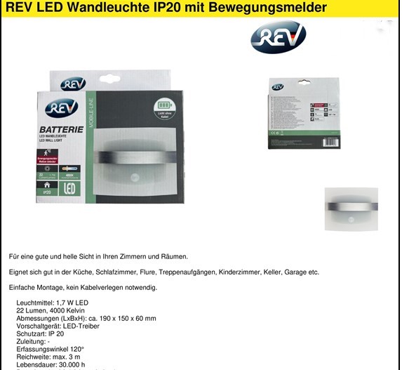 REV Wandlicht IP20 met bewegingsmelder